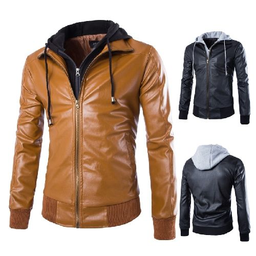 Erkek Kapşonlu Deri Ceket