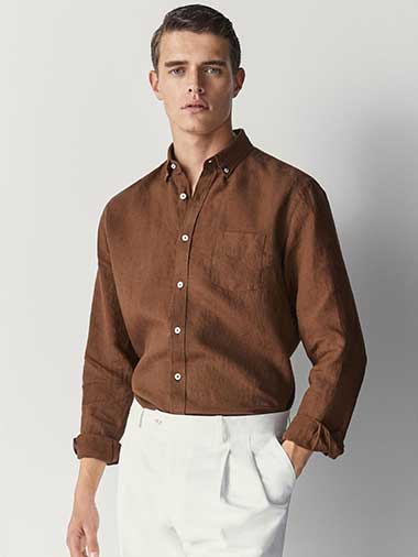 Kahverengi Erkek Keten Gömlek
