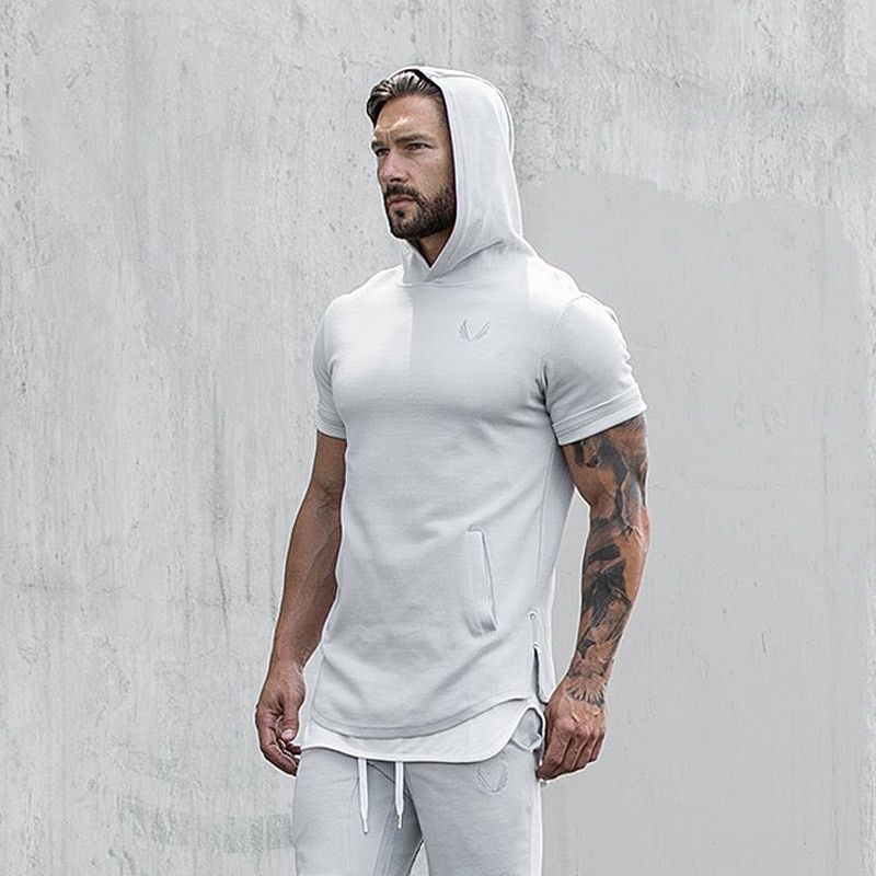 Yarım Kollu Kapşonlu Sweatshirt Erkek